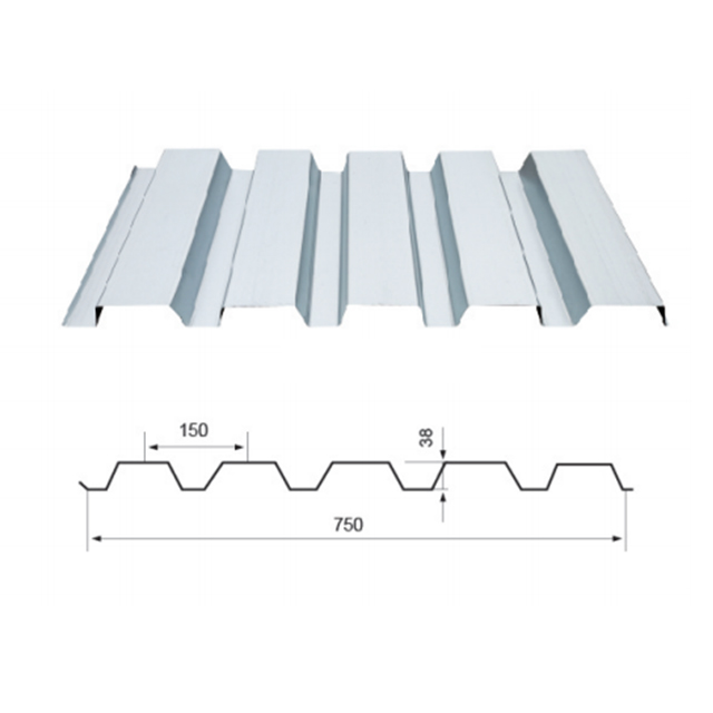 HY-38-150-750 features a coil width of 500mm and thickness 0.6-1.0mm. Section moment of inertia 22.12-32.14 cm⁴/m and section modulus 11.35-18.55 cm³/m ensure reliable performance. Designed for roof and wall systems, it’s made with high-quality galvanized steel and advanced processes. Suitable for small to medium-span structures, it supports customized cuts and efficient construction, meeting diverse project requirements.